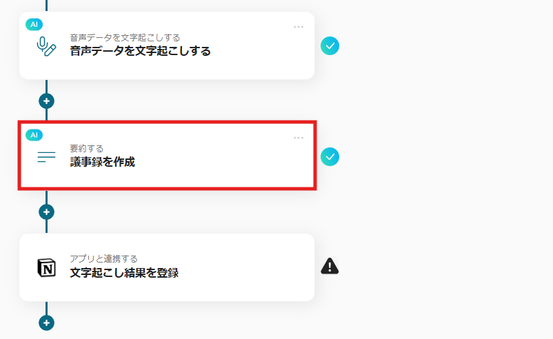 これで【Google Meetの会議を自動で文字起こしし、議事録をNotionに追加する】というフローが完成です。