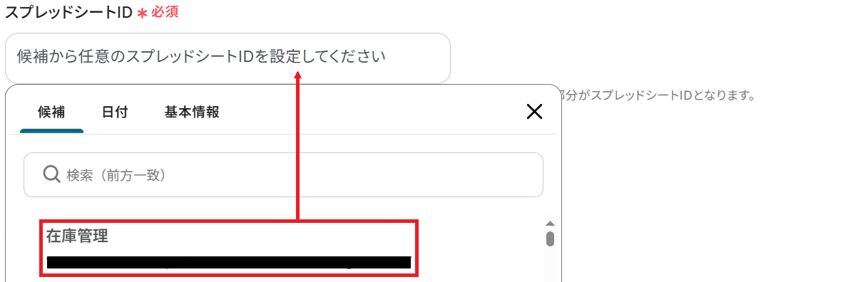 次に、連携するスプレッドシートIDを候補から選択しましょう。
