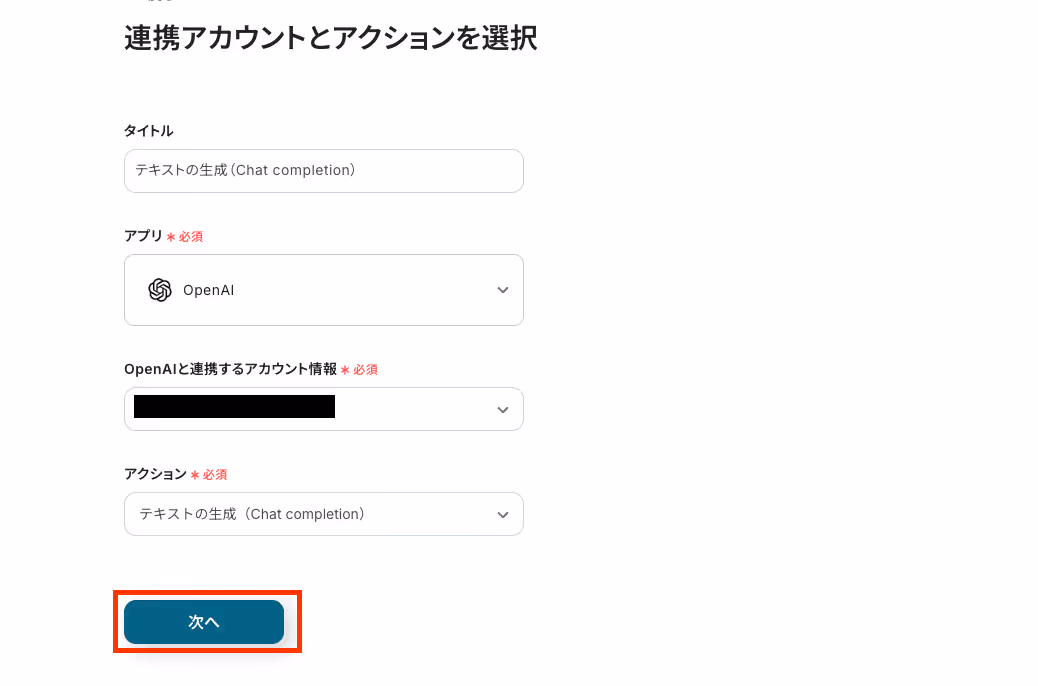 ※ChatGPT(OpenAI)を使ったアクションを動かすには、OpenAIのAPI有料プランに契約しておく必要があります。