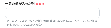 一意の値が入った列を入力欄下部の説明を参考に入力してください。