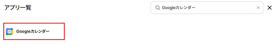 続いて、「Google カレンダー」のマイアプリ登録です。 Google スプレッドシートのマイアプリ登録の手順と同様、「新規接続」クリックの後に検索窓で「Google カレンダー」を検索します。