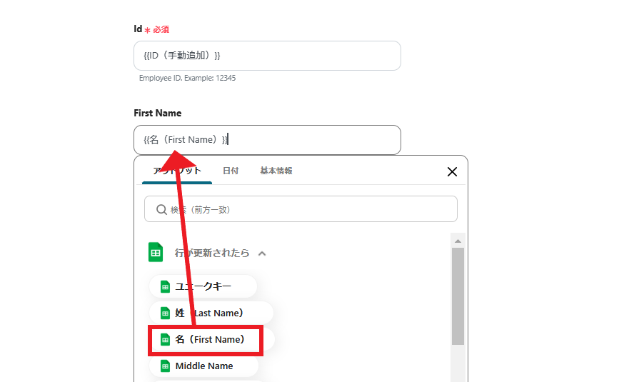 一方、このテンプレートを使うと、Google スプレッドシートで新たな行が追加されたときに従業員情報を追加できるようになります。