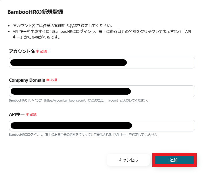 ・Google スプレッドシートとBambooHRをマイアプリ登録