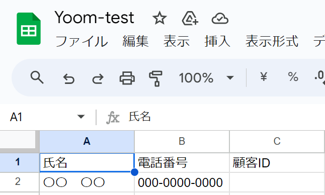 Googleスプレッドシートに移動し、テスト用に顧客情報を入力します。