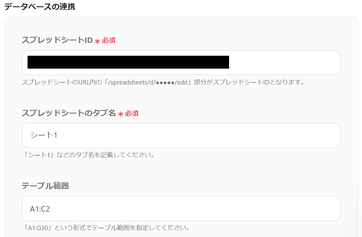 ※Googleスプレッドシートで設定したアウトプットを利用します。