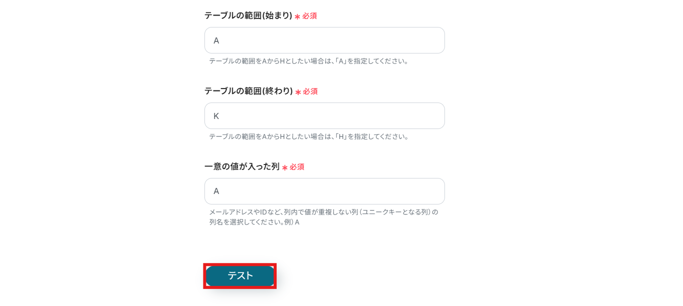 ※Googleスプレッドシートのテーブル範囲の定義についてはこちらをご参照ください。 https://intercom.help/yoom/ja/articles/8703465