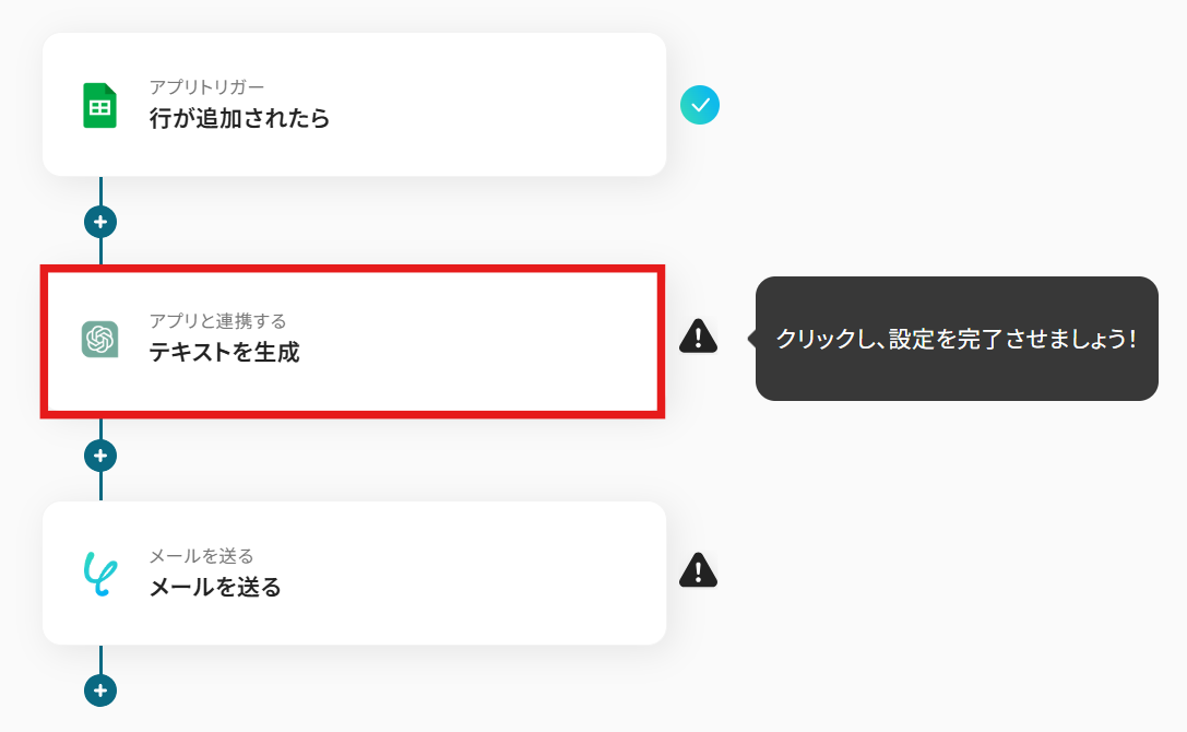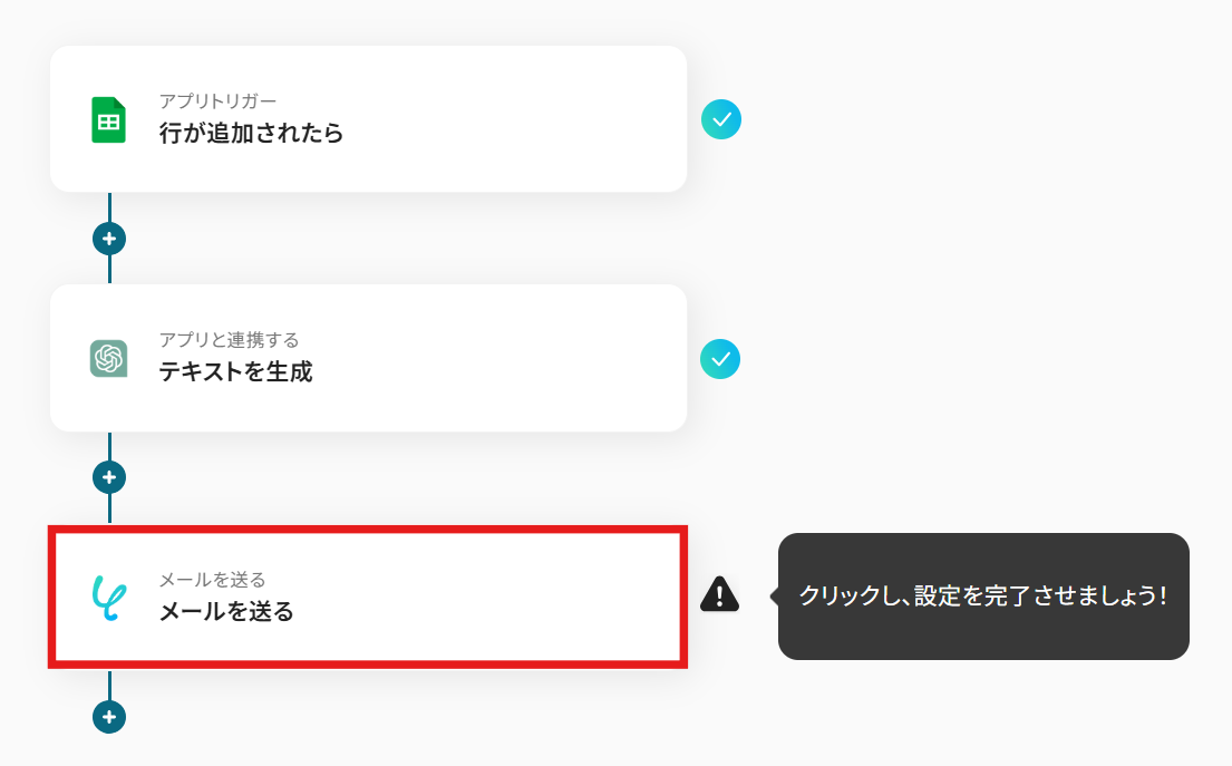 これで、【Google スプレッドシートのリストからChatGPTで案内メールを自動生成し、メール送信する】というフローが完成しました。
