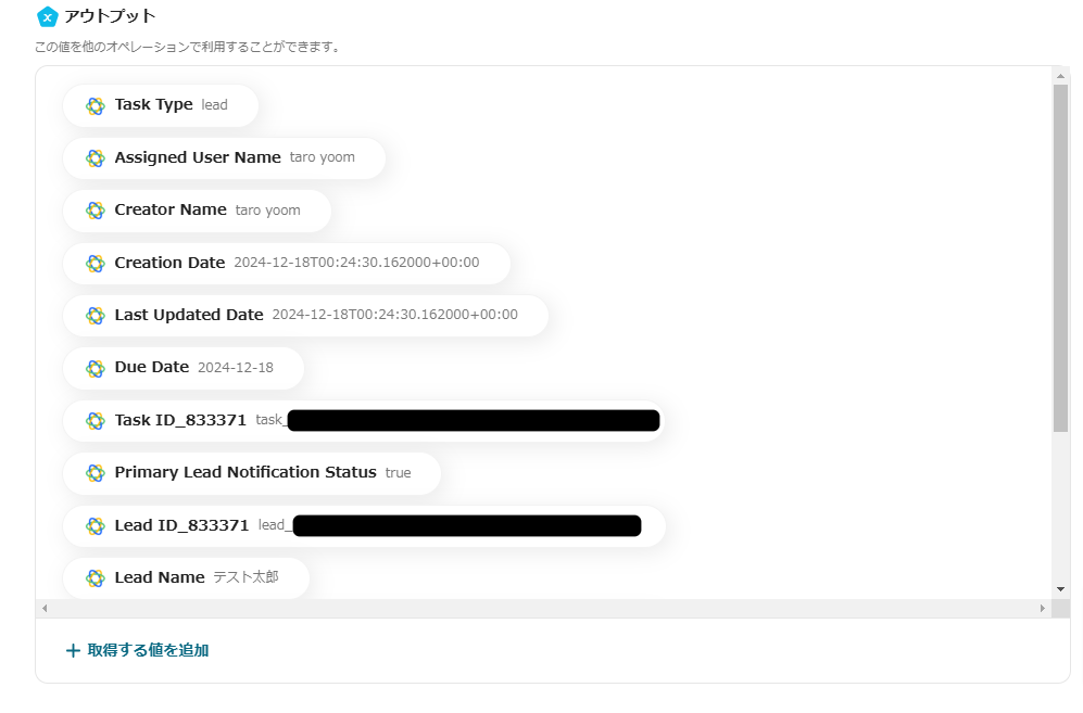 成功すると、アウトプット(取得した値)がCloseに新しいタスクとして登録されるか確認します。
