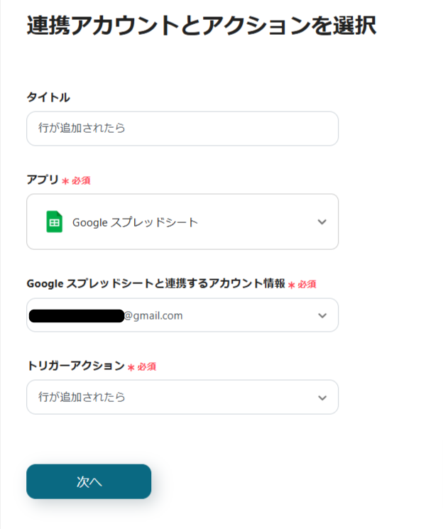 最初の設定は「行が追加されたら」です。