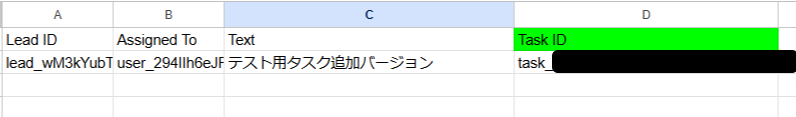 無事にGoogle スプレッドシートにTask IDが追加されました。