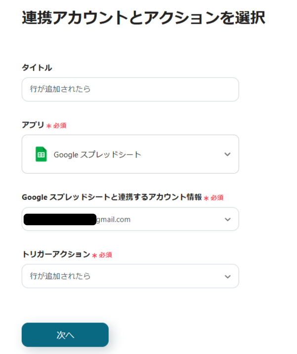 最初の設定は「行が追加されたら」です。