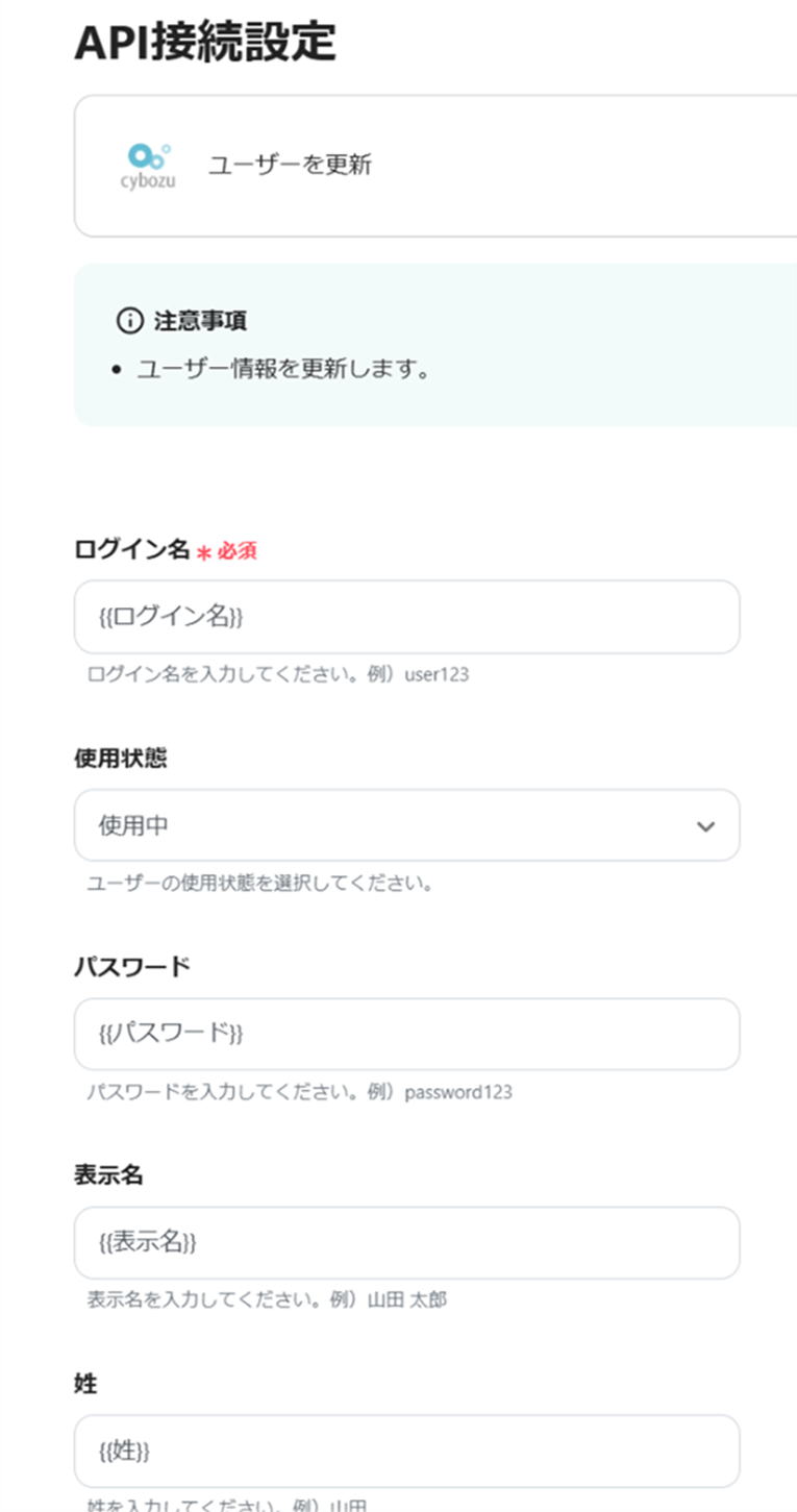 (3)cybozu.com共通管理のAPI接続設定画面からログイン名をアウトプットより選択します。