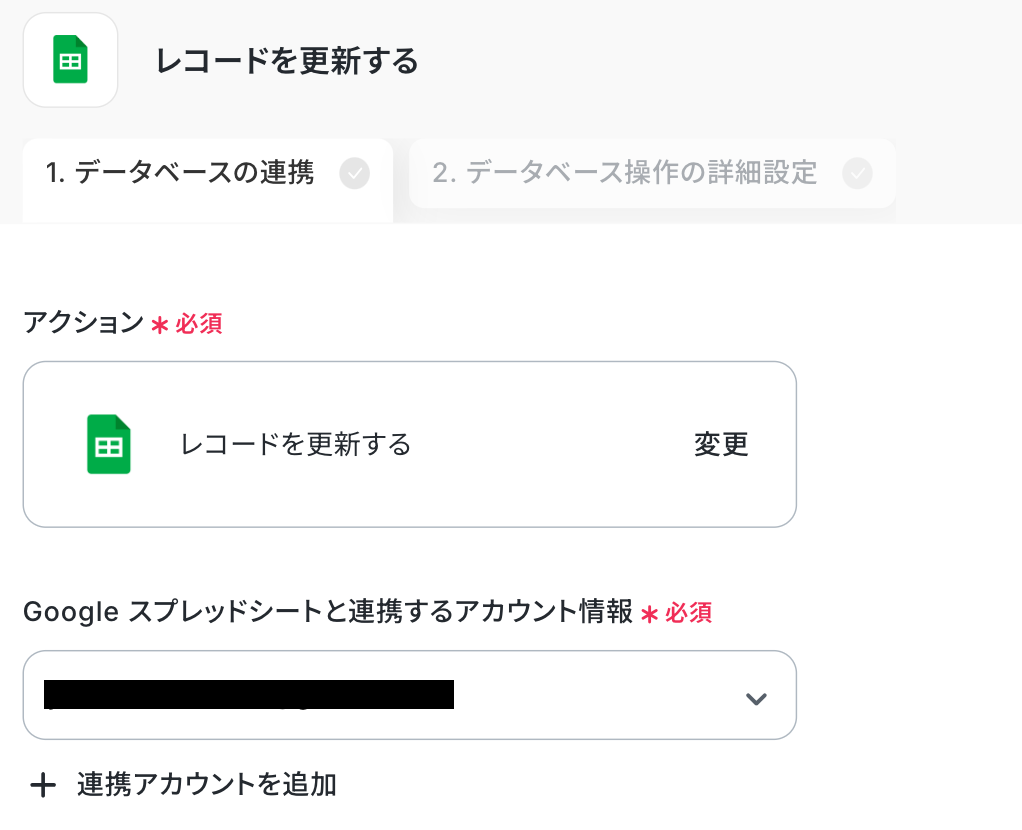 詳細設定を行います。 「更新したいレコードの条件」は、入力欄をクリックして表示されるアウトプットから選択してください。