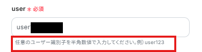 「user」は、入力欄下の説明に従って、入力してください。