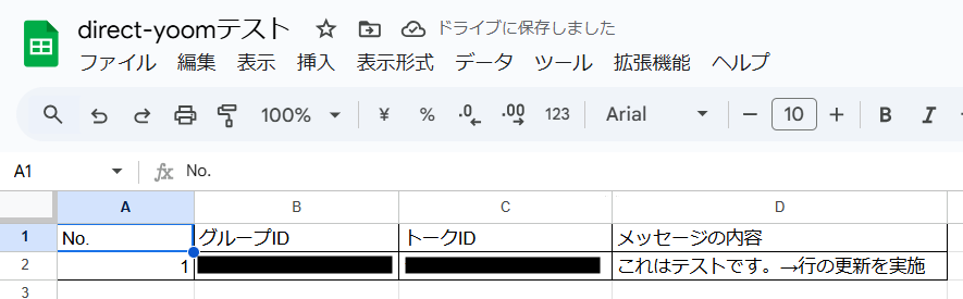 ※今回は下記のようにGoogle スプレッドシートを作成し、テストを行っています。