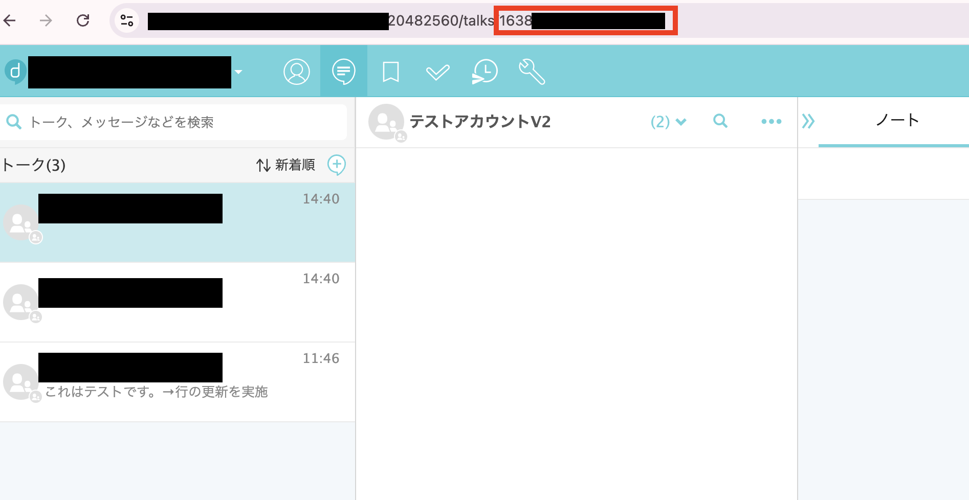 Googleスプレッドシートの作成にはトークID の記載が必要です。 トークIDはdirectのトーク画面の上部に記載されています。