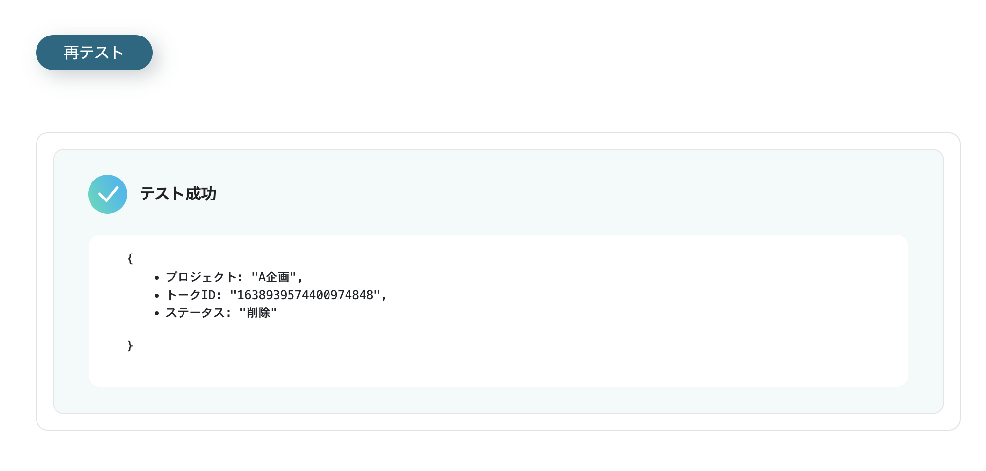 最後に「テスト」 の青ボタンをクリックし、テスト成功と出たら完了です。「保存する」 を選択して次に進みましょう。