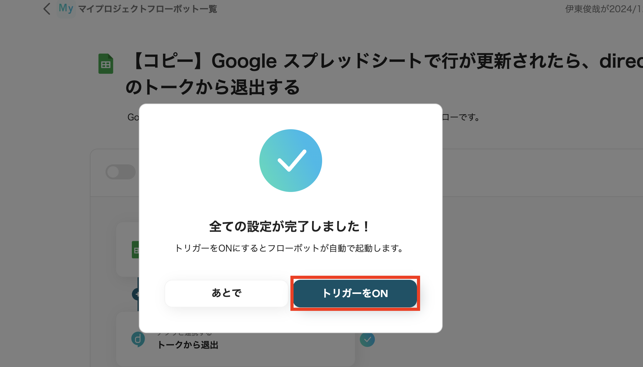 Google スプレッドシートで行が更新されたらdirectのトークから退出するフローを作ってみよう