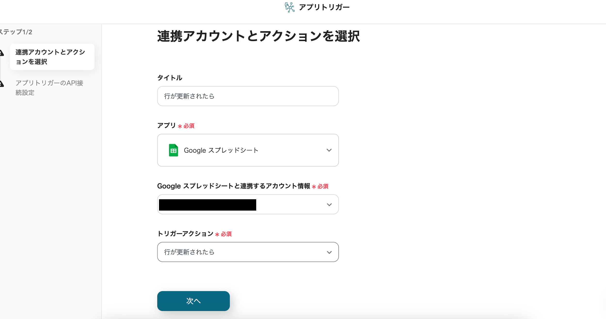 ステップ4:Google スプレッドシートのトリガー設定