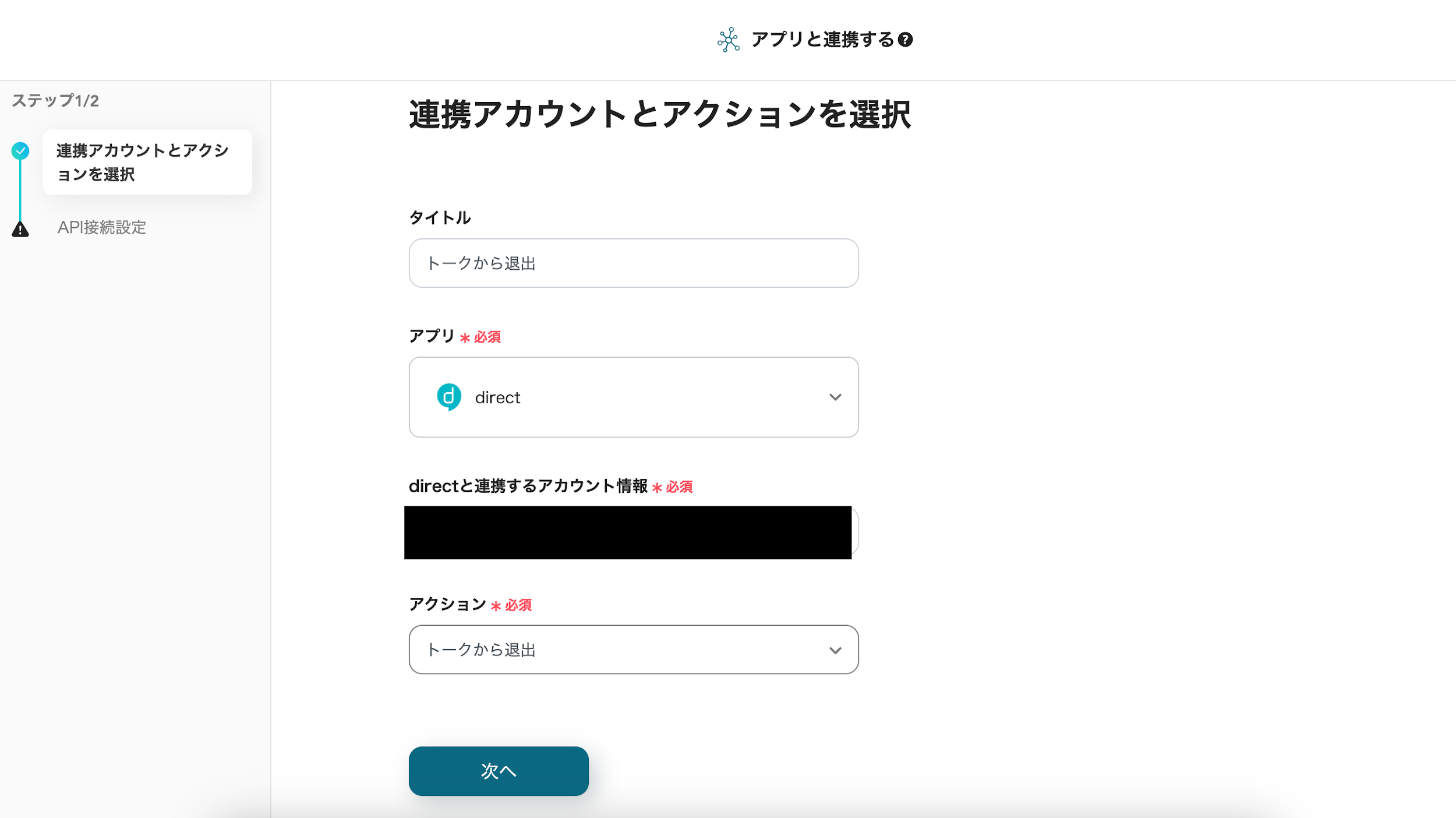 最後にdirectとの連携を設定します。 下記画面の「トークから退出」 をクリックします。