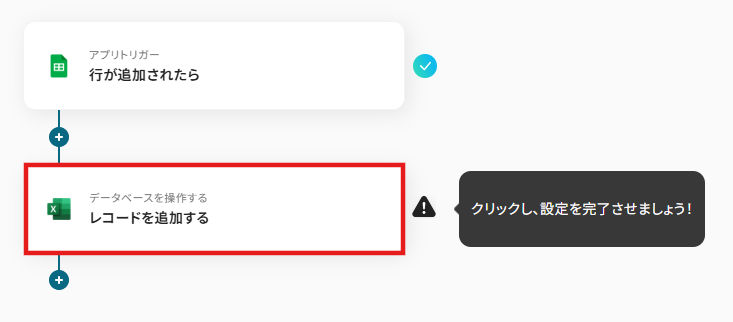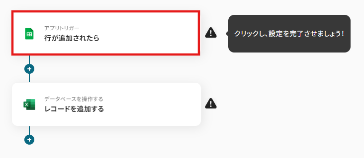 - 「トリガーアクション」→行が追加されたら