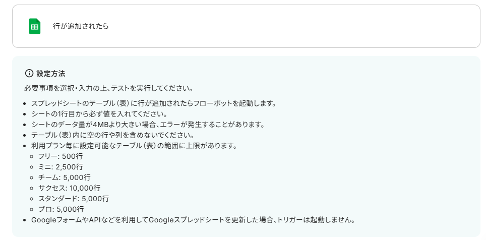 ステップ3:Google スプレッドシートのトリガーアクション設定