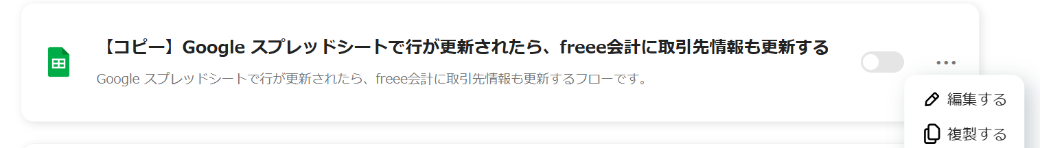 マイアプリ登録が完了したあと、「Google スプレッドシートで行が更新されたら、freee会計の取引先情報も更新する」フローボットを作成していきます。