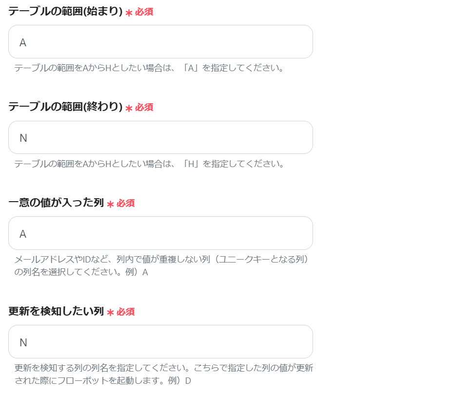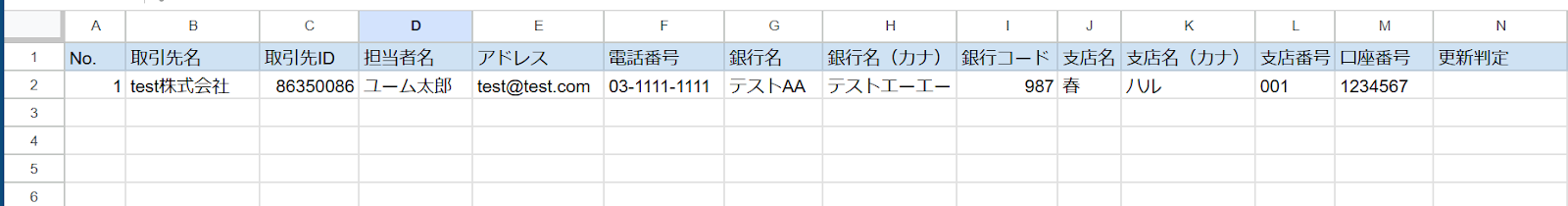 N列の更新判定は後ほど使うので、空欄にしておきます。