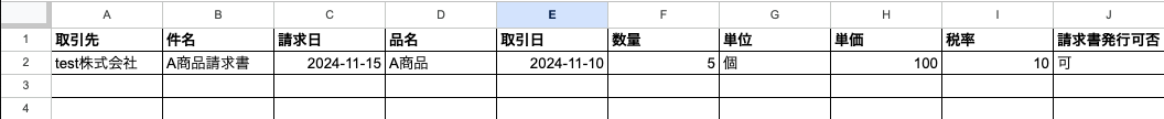 これでGoogle スプレッドシートで行が更新されたら、freee請求書で請求書が自動作成されます。