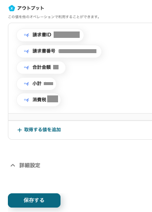 最後に、freee請求書のアクション設定を行います。