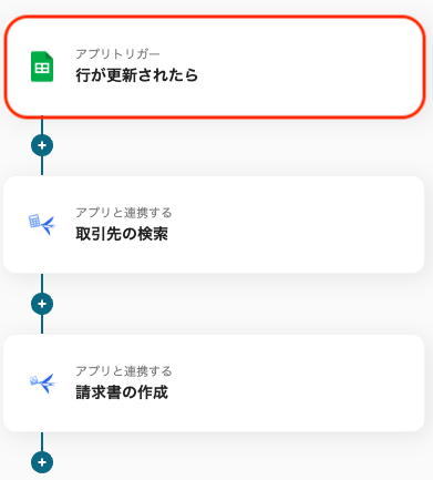 このフローは、Google スプレッドシートで行が更新されるとfreee請求書における請求書の作成を自動化できるため、請求書の作成を効率化します。