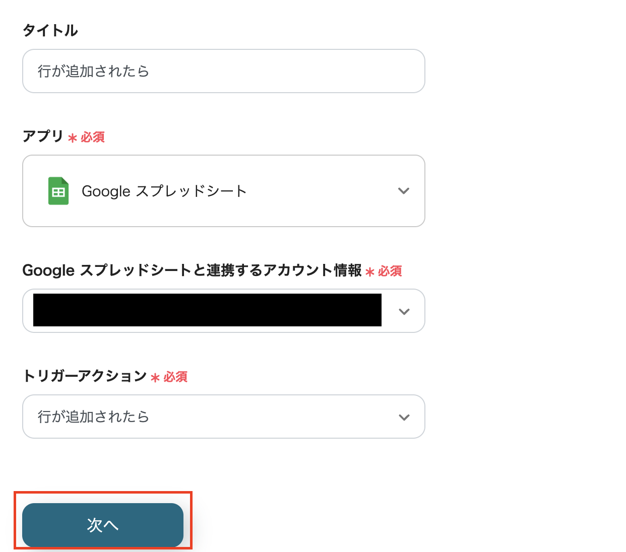 (1)まず、Google スプレッドシートのアプリトリガーを設定します。