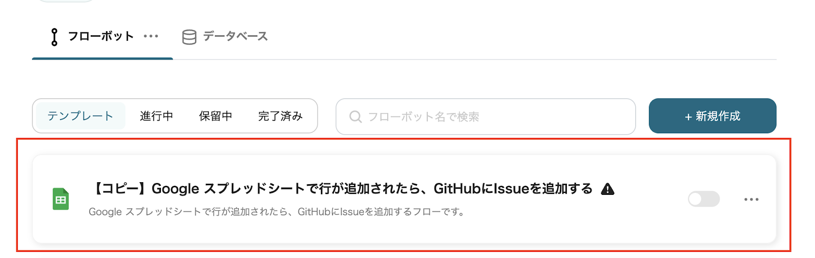 では、「Google スプレッドシートで行が追加されたら、GitHubにIssueを追加する」のテンプレートを使ったフローボットを作成していきましょう。
