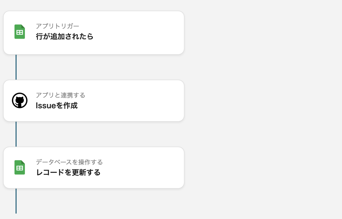 具体例として、Google スプレッドシートに入力された内容が自動でGitHubのIssueに追加されれば、正確な情報が記録されるようになります。