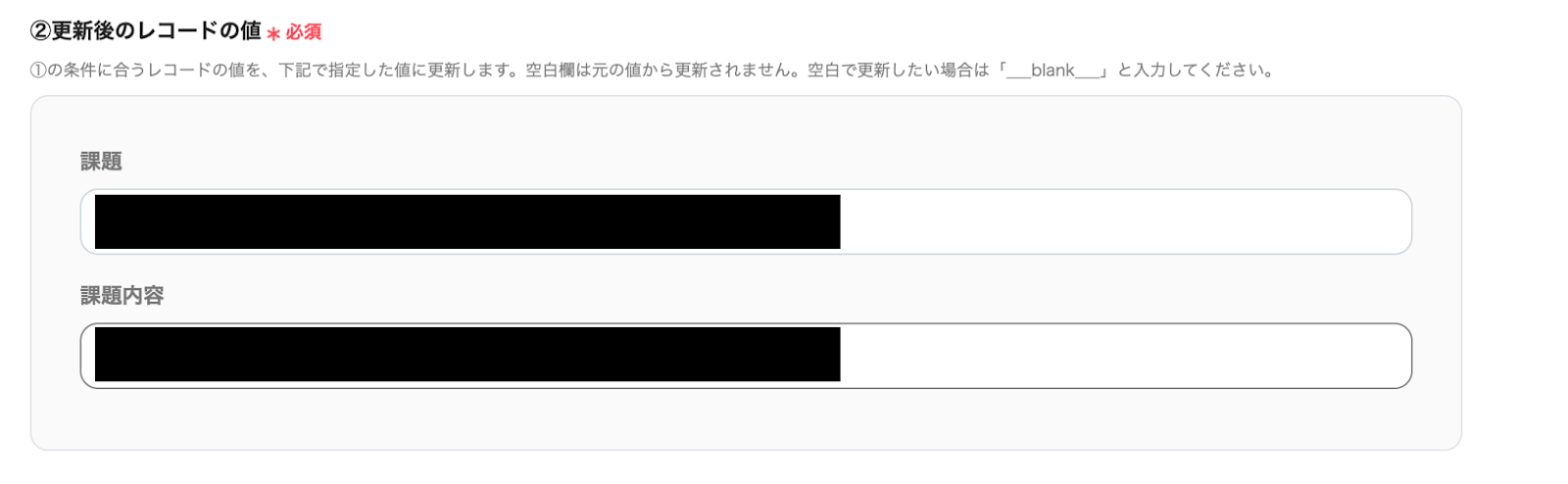 「①更新したいレコードの条件」に設定した値は、ここで設定した値に更新されます。