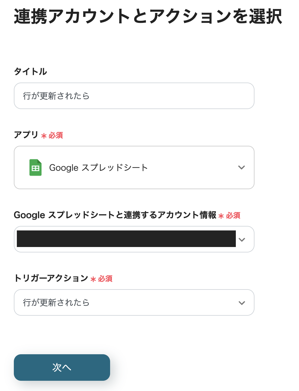 連携するアカウント情報を確認し、「次へ」をクリックします。