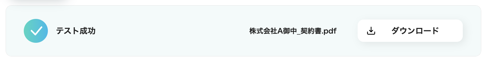 各項目の入力が完了したら「テスト」をクリックします。 テストに成功すると、契約書のサンプルをダウンロードできます。仕上がりを確認しましょう。 問題なければ「保存する」をクリックします。