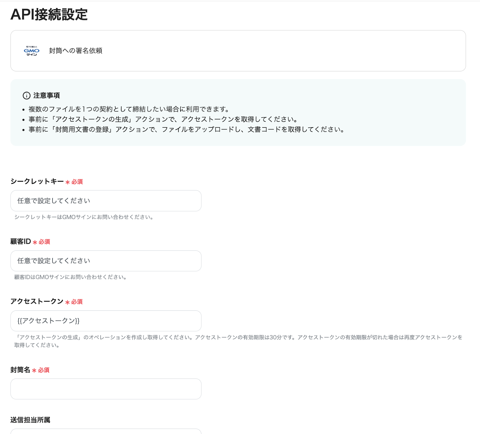 ・事前にGMOサインにて「シークレットキー」「顧客ID」の取得をお願いいたします。