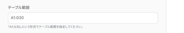 「テーブルの範囲」は、シートの始まりと終わりの範囲を指定してください。