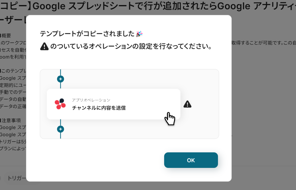 Google スプレッドシートのトリガー設定およびGoogle アナリティクスのアクション設定