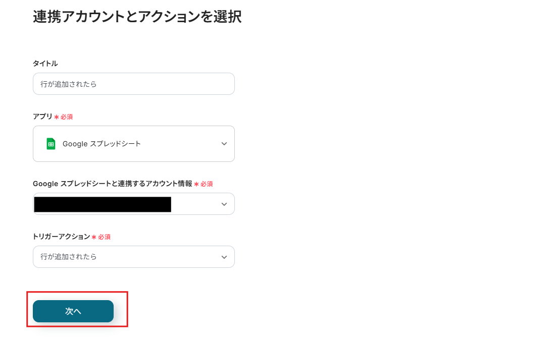 「スプレッドシートID」は、候補から選択しましょう。