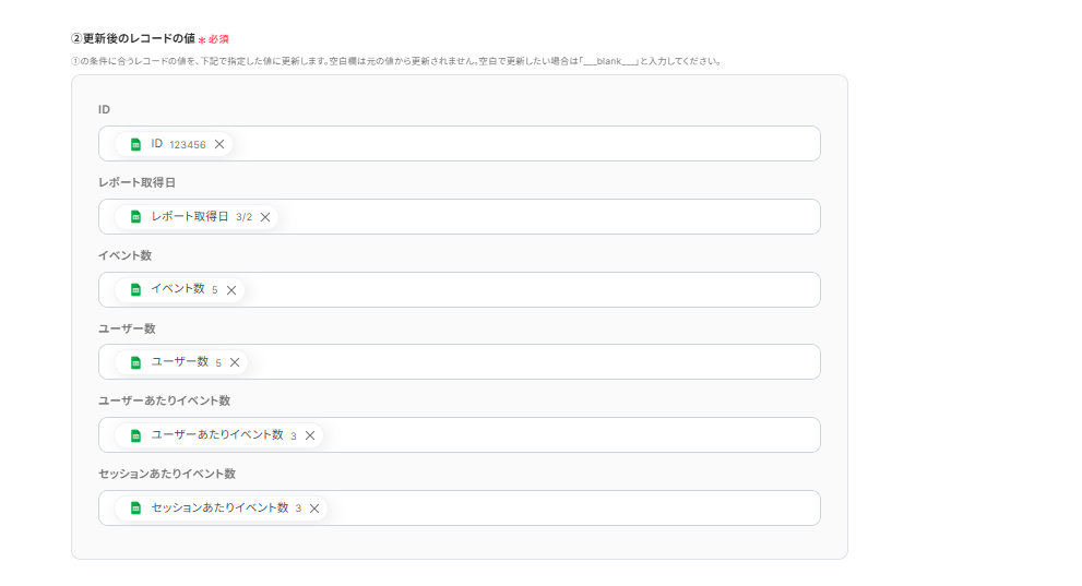 続いて、「更新後のレコードの値」を設定していきます。