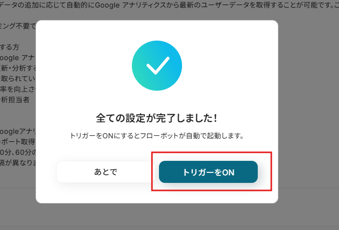 以下の画面が出てきたら「トリガーON」をクリックしてください。