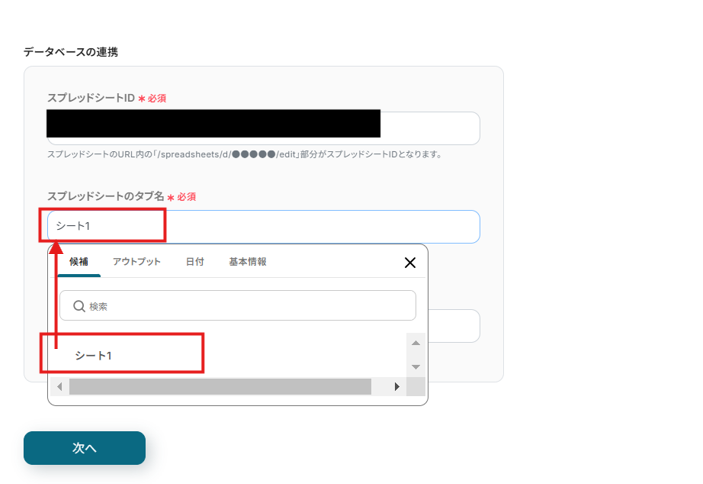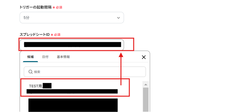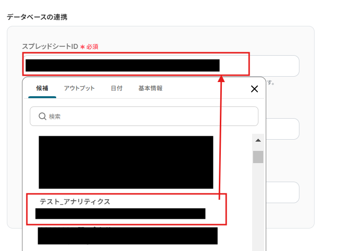 「スプレッドシートID」は候補から選択してください。