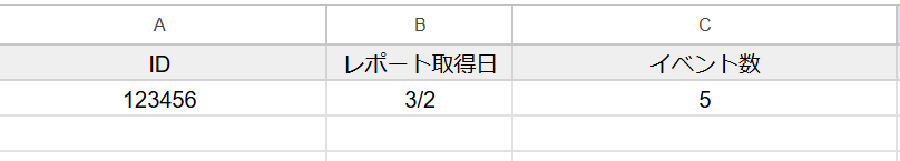 ※Google スプレッドシートにレポート取得日、Google アナリティクスのプロパティIDを記録しておく必要があります。
