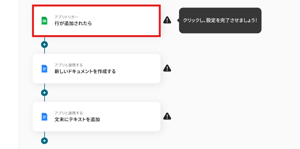 1.アプリと連携する「文末にテキストを追加 」をクリックしてください。
