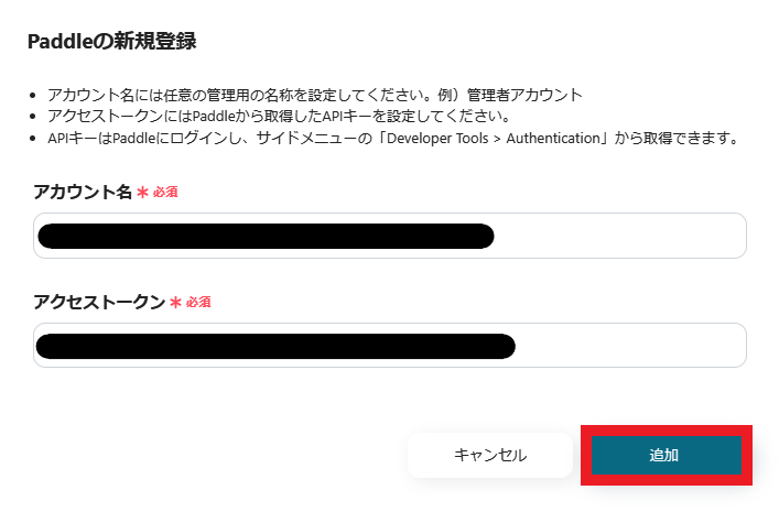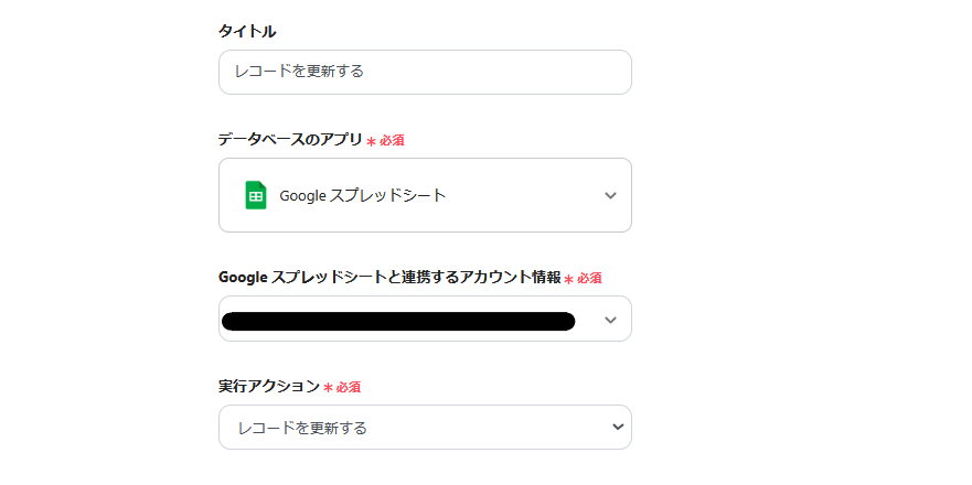 Google スプレッドシートと連携するアカウント情報を入力します。