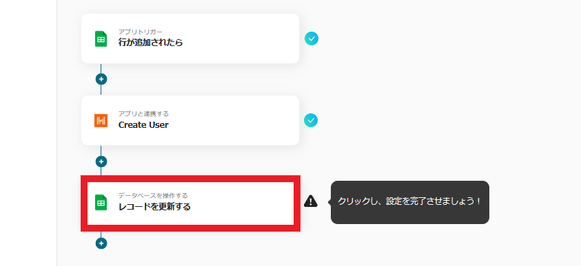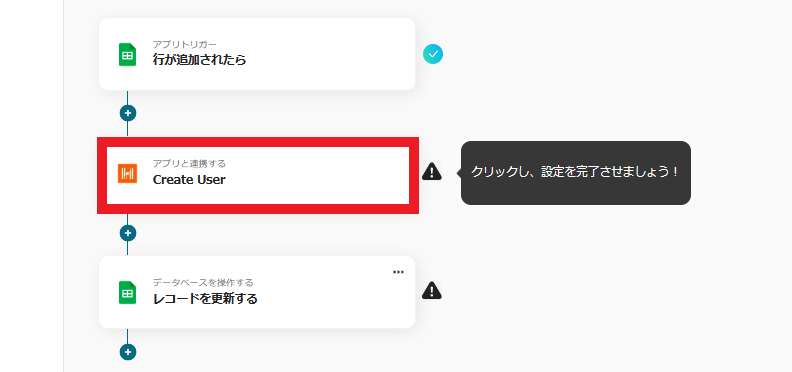 1.フローに戻ります。次に、「Create User」のアイコンをクリックしてください。