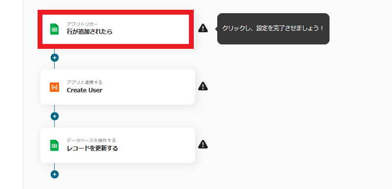 1.まず、一番上の「行が追加されたら」をクリックします。