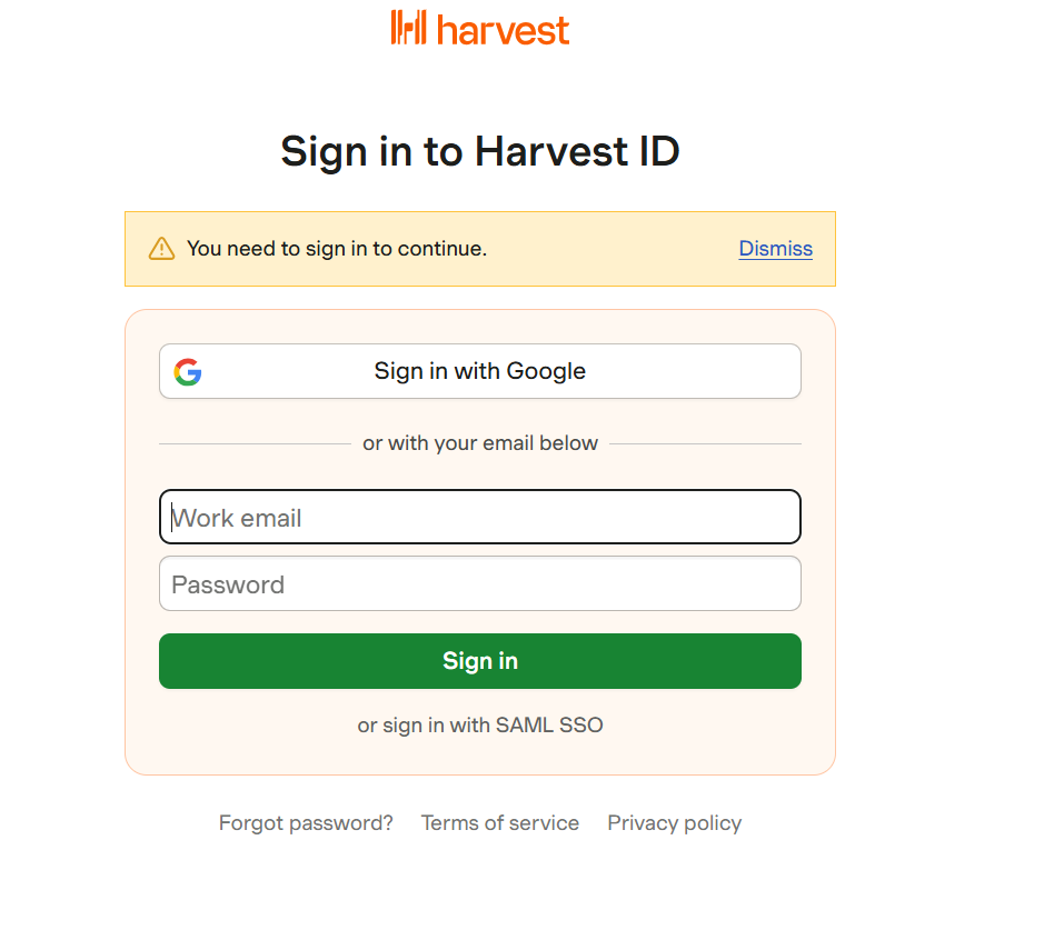 同様にHarvestを選択できたら、使用するアカウントでログインしてください。